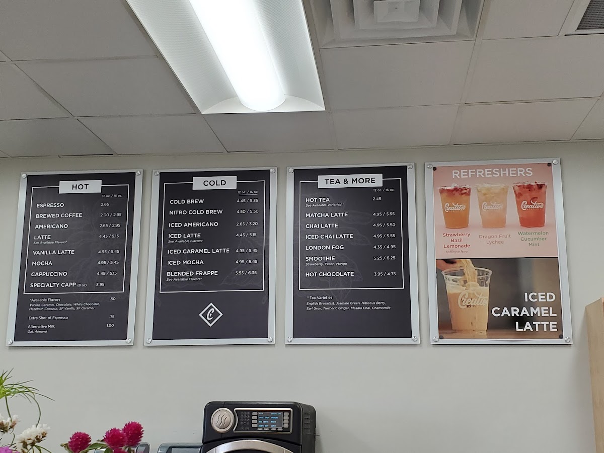 The menu also caters to tea lovers with options such as Iced Chai Latte and Hot Chocolate, making it an inviting spot for everyone. Customer reviews highlight the friendly baristas and quick service, with the frappes, particularly praised for their creamy texture. Creation Coffee is more than just a coffee shop; it's a welcoming space for work or relaxation. As you sip, you'll feel inspired to return again and again!